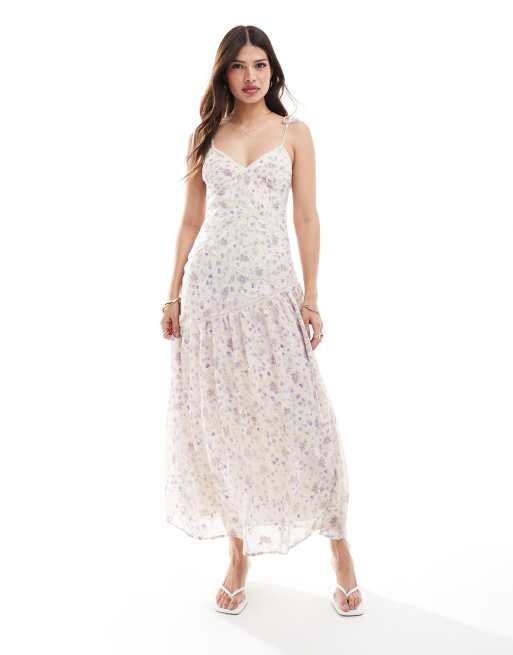 ASOS DESIGN - Lyslilla midikjole med paneler og blondeindsatser i småblomstret print