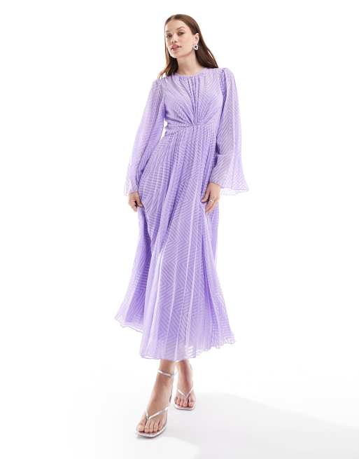 ASOS DESIGN - Lyslilla midikjole med plisseret V-mønster, bindebånd på ryggen og ærmer med svaj i chiffon