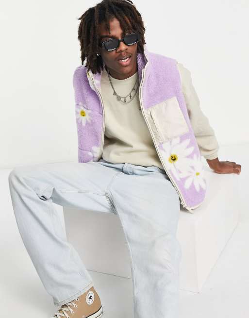 ASOS DESIGN - Lyslilla vest i imiteret lammeskind med blomstermønster