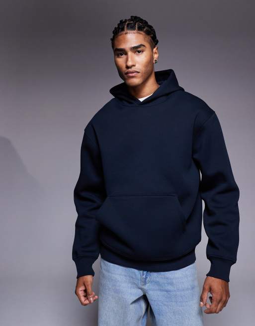 ASOS DESIGN - Marineblå afslappet hættetrøje i scuba-lignende stof
