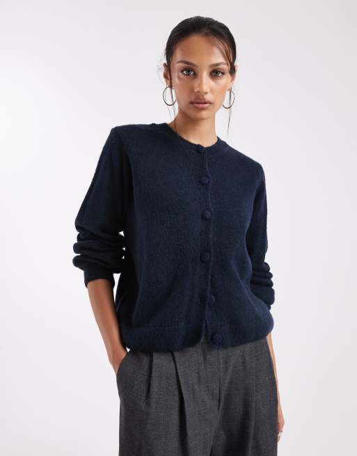 ASOS DESIGN - Marineblå cardigan med blouson-ærmer i vamset strik