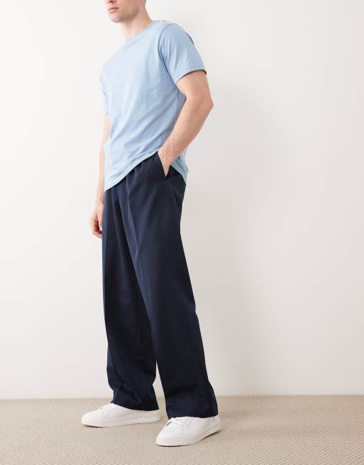 ASOS DESIGN - Marineblå elegante pull-on-bukser med vide ben
