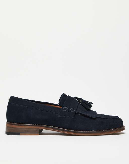 ASOS DESIGN - Marineblå loafers med frynser i ruskind