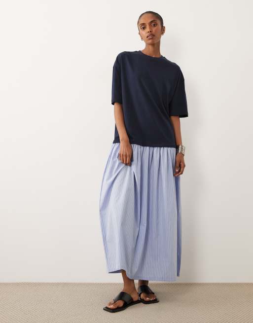 ASOS DESIGN - Marineblå midi-T-shirtkjole i bomuld med hybriddesign og striber