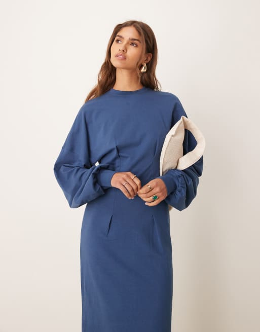ASOS DESIGN - Marineblå midikjole midikjole med indsyning i taljen i sweatshirt-materiale