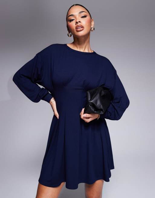 ASOS DESIGN - Marineblå mini-sweatshirtkjole med tætsiddende talje