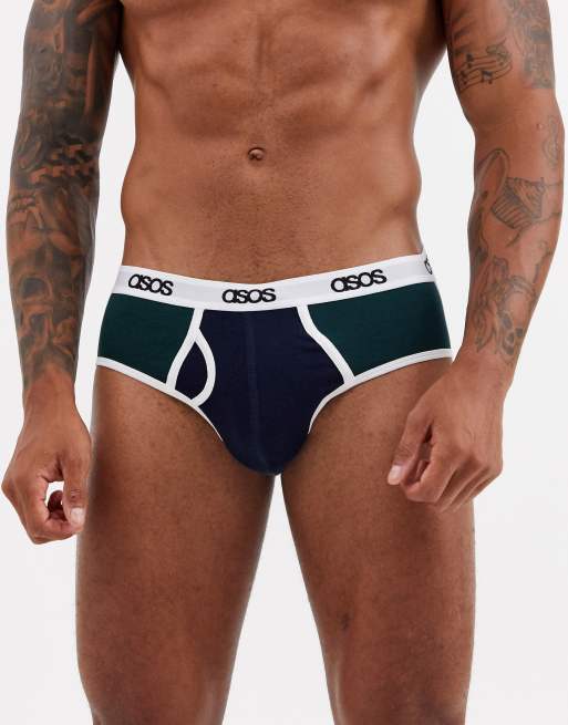 ASOS DESIGN - Marineblå og khakigrøn skridtbeskytter i økologisk bomuld med brandet taljebånd