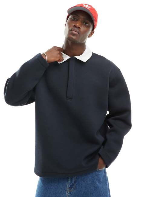 ASOS DESIGN - Marineblå og oversized rugby-top i scuba-stof