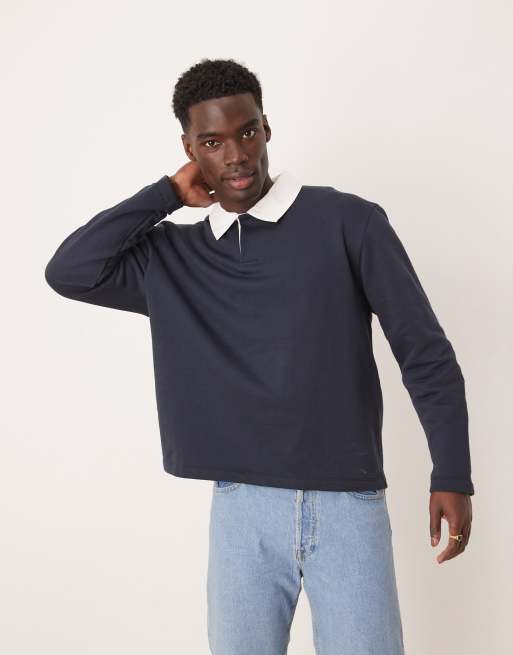 ASOS DESIGN - Marineblå og oversized sweatshirt med kontrastfarvet polokrave