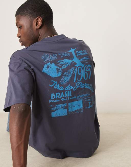 ASOS DESIGN - Marineblå og oversized T-shirt med bygrafik