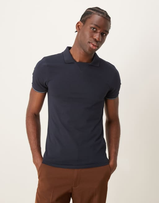 ASOS DESIGN - Marineblå og tætsiddende polotrøje med reverskrave