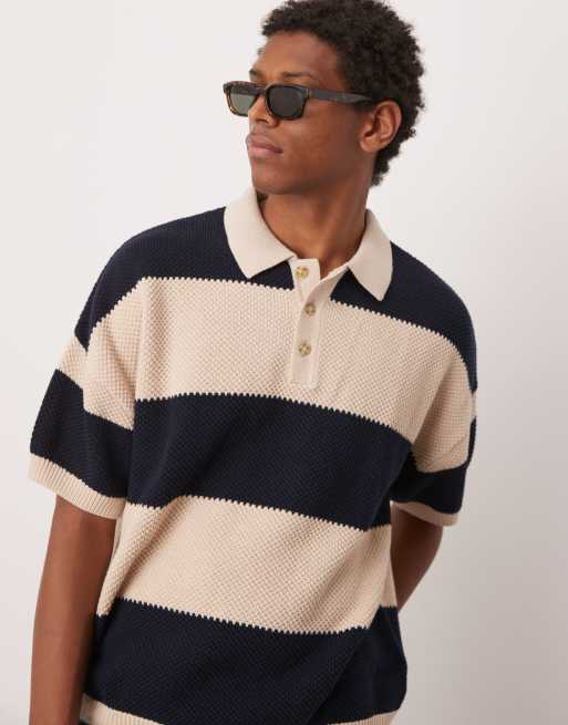 ASOS DESIGN - Marineblå oversized polo med striber i tekstureret strik