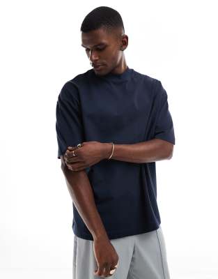 ASOS DESIGN - Marineblå oversized T-shirt med høj hals i kraftigt stof
