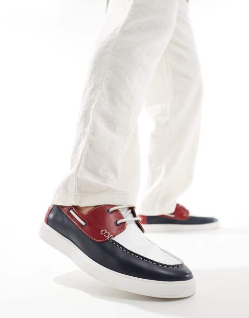 ASOS DESIGN - Marineblå sejlersko med snørebånd og røde og hvide detaljer i ruskind