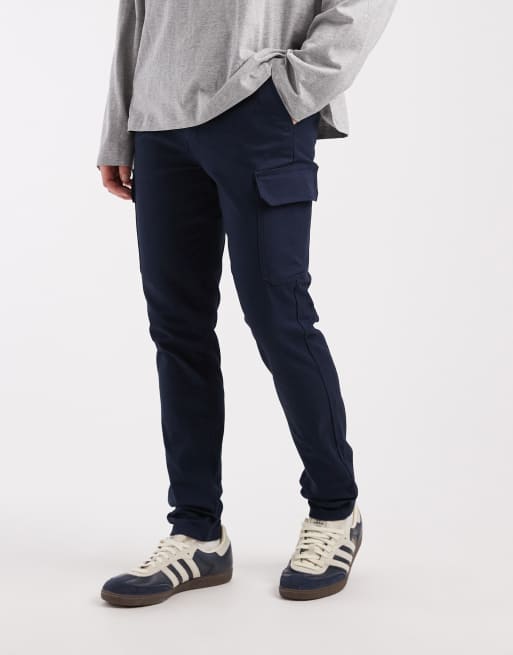 ASOS DESIGN - Marineblå skinny-cargobukser