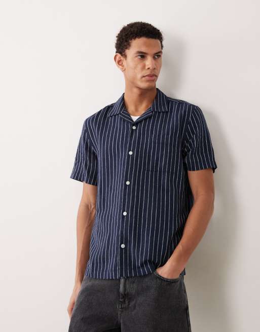 ASOS DESIGN - Marineblå skjorte i hørblanding med regular fit-pasform og striber