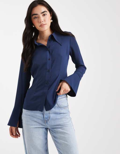 ASOS DESIGN - Marineblå skjorte med overdreven krave og manchetter