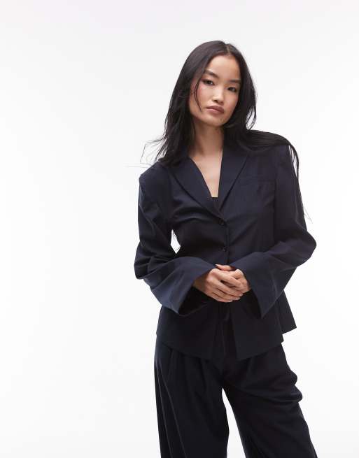 ASOS DESIGN - Marineblå skræddersyet skjorte med skulderpuder og nålestriber
