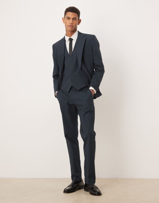 ASOS DESIGN - Marineblå slim-habitbukser med sildebensmønster