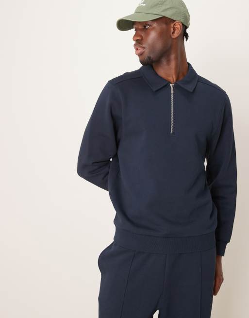 ASOS DESIGN - Marineblå sweatshirt med kvart lynlås - Del af sæt
