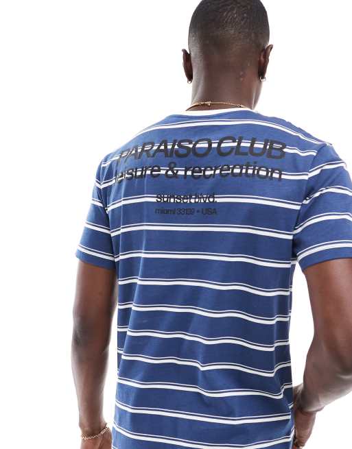ASOS DESIGN - Marineblå T-shirt med hvide striber og rygprint