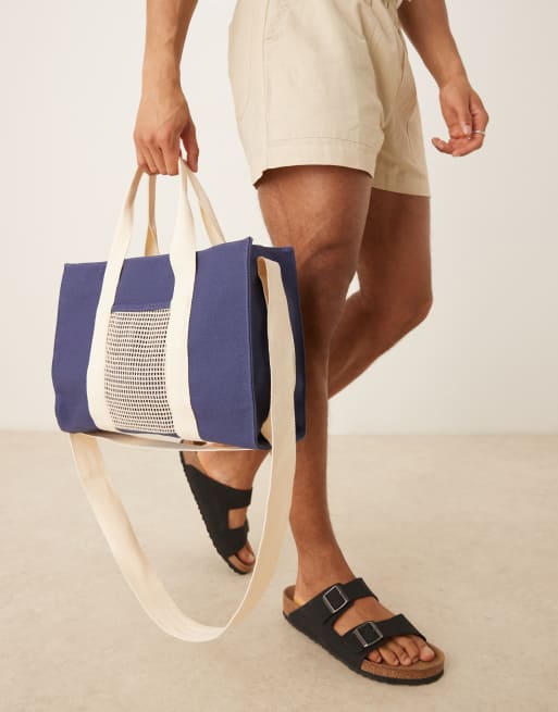 ASOS DESIGN - Marineblå tote-taske med struktur i kanvas