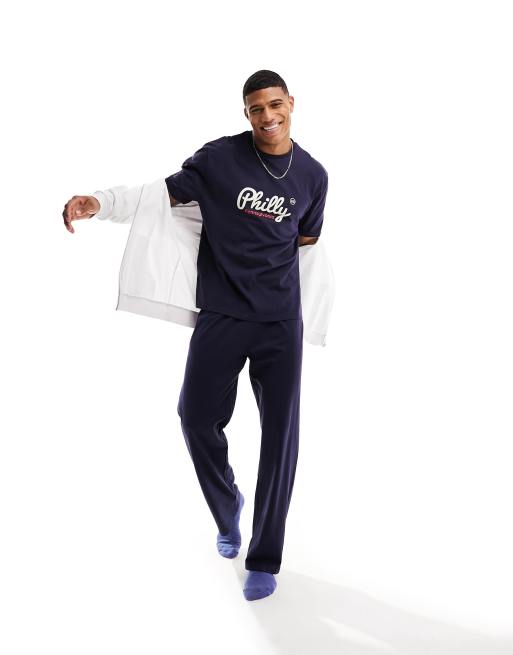 ASOS DESIGN - Marineblåt pyjamassæt med 'Philly'-print