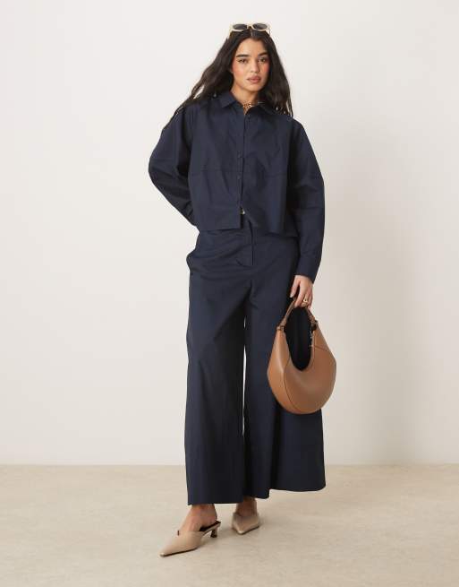 ASOS DESIGN - Marineblåt sæt med afslappet skjorte og culottebukser med vide ben og enkelt snit