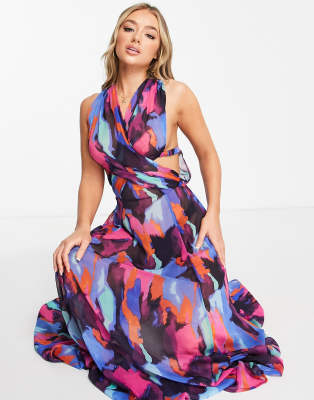 ASOS DESIGN - Maxi-strandkjole i udtværet abstrakt print