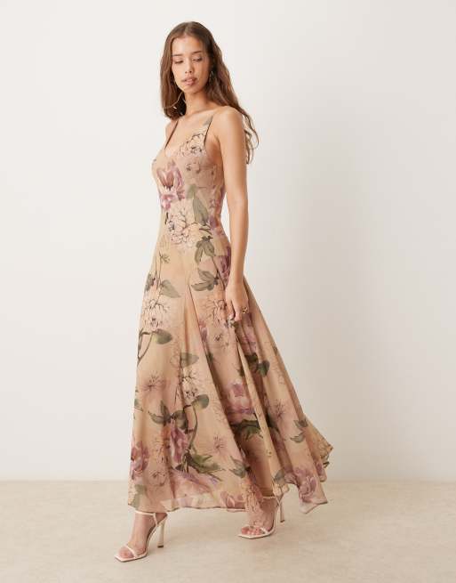 ASOS DESIGN - Maxikjole i chiffon med kiler og blomstermønster