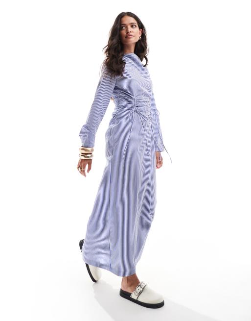 ASOS DESIGN - Maxikjole med løbesnor og rynker foran i blå striber