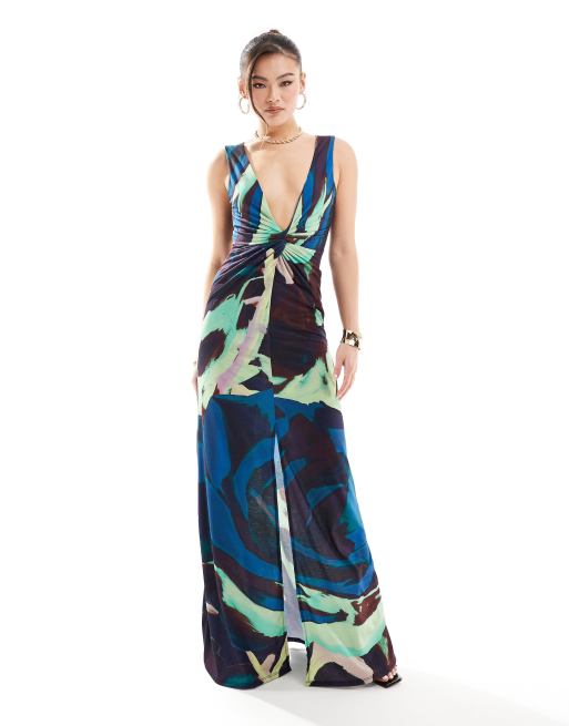ASOS DESIGN - Maxikjole med snoet front og abstrakt print