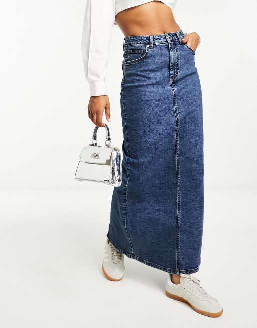 ASOS DESIGN - Maxinederdel i denim med mørk vask og slids i sømkanten