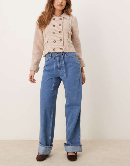 ASOS DESIGN - Mellemblå dad-jeans med bælte