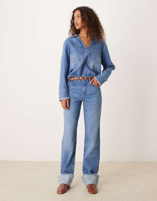 ASOS DESIGN - Mellemblå jeans med opsmøg i 90'er-stil