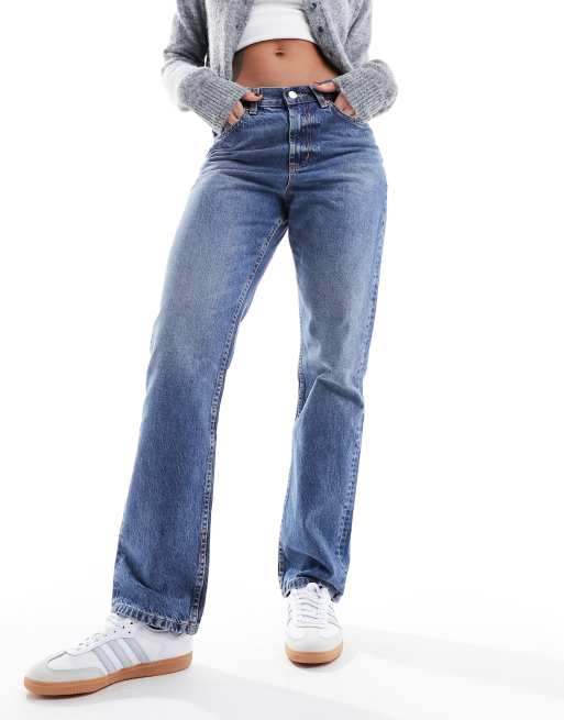 ASOS DESIGN - Mellemblå Mid Rise-jeans med lige ben