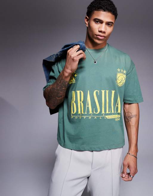 ASOS DESIGN - Mellemgrøn og oversized T-shirt med tekstprint på brystet
