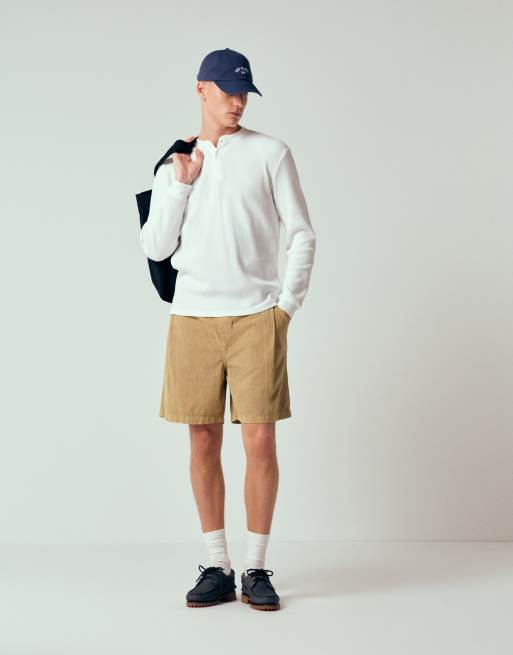 ASOS DESIGN - Mellemlange beige jorts med tekstur - Del af sæt