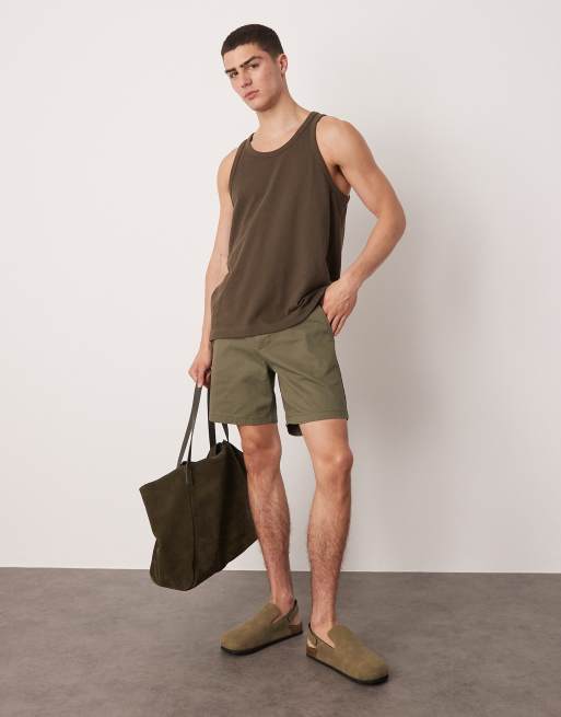 ASOS DESIGN - Mellemlange skinny-chinoshorts i kakigrøn