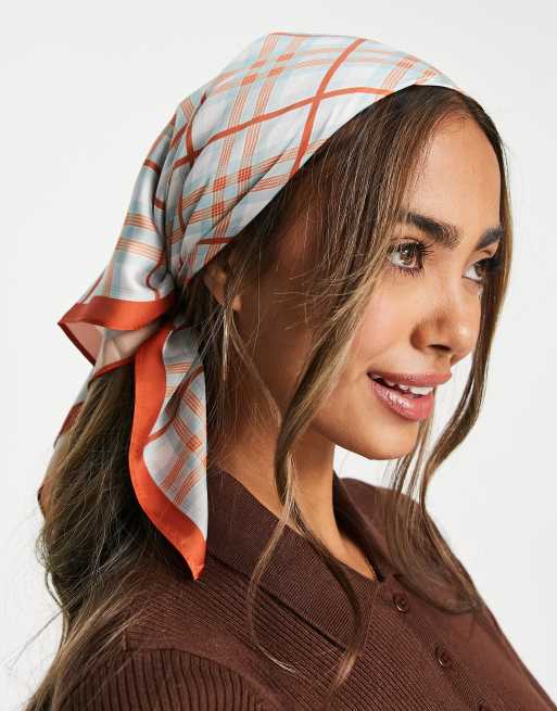 ASOS DESIGN - Mellemstort hovedtørklæde med multifarvet ternet print i polyestersatin - MULTI