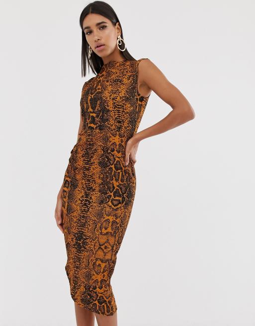 ASOS DESIGN midi pencilkjole med lægdetaljer og med slangeprint