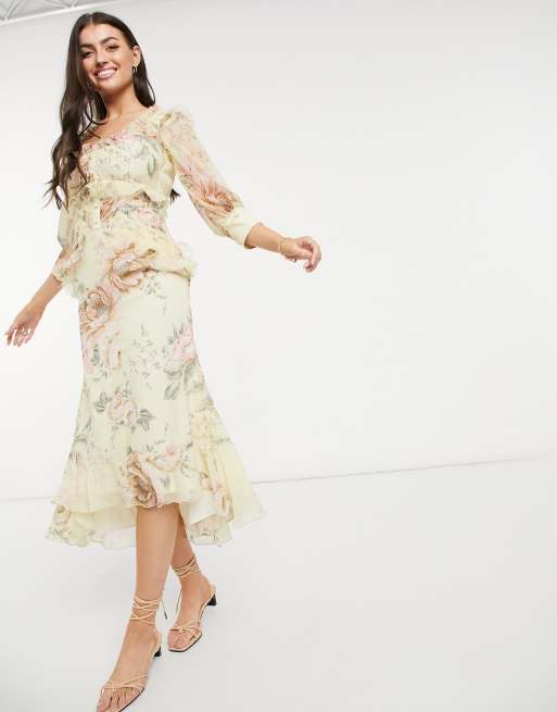 ASOS DESIGN - Midikjole med knapper og rå kant i blomsterprint
