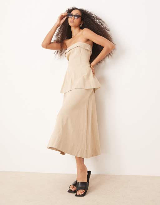 ASOS DESIGN - Midikjole med lagdelt peplum-talje og bandeau-snit