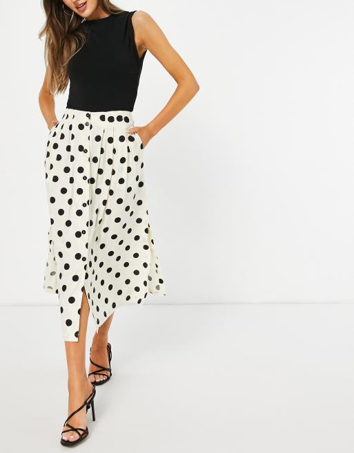 ASOS DESIGN - Midinederdel med knapper og dyb lommedetalje i cremefarvet og sort prikket print