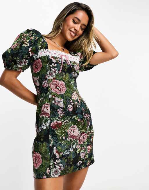 ASOS DESIGN - Milkmaid-minikjole med tapetmønster sløjfe og blomstermønster