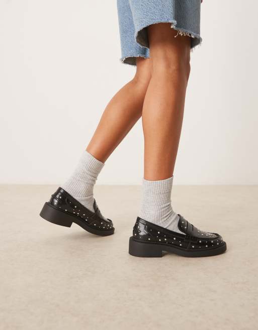 ASOS DESIGN - Minerva - Sorte loafers med nittedetaljer