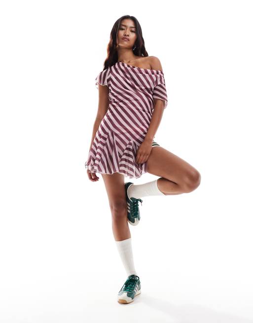 ASOS DESIGN - Minikjole i chiffonmesh med kiler og oversized stribe