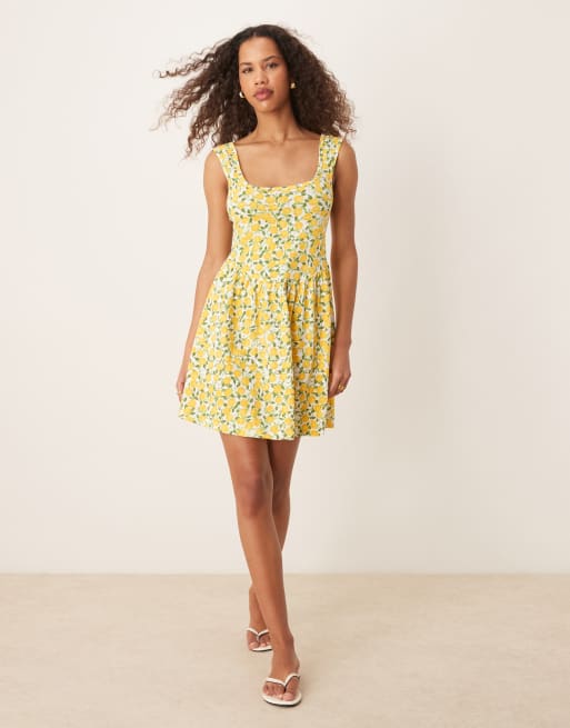 ASOS DESIGN - Minikjole med dyb rund hals og citronprint