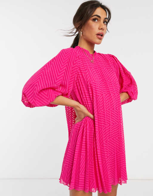 ASOS DESIGN - Minikjole med pufærmer i hot pink