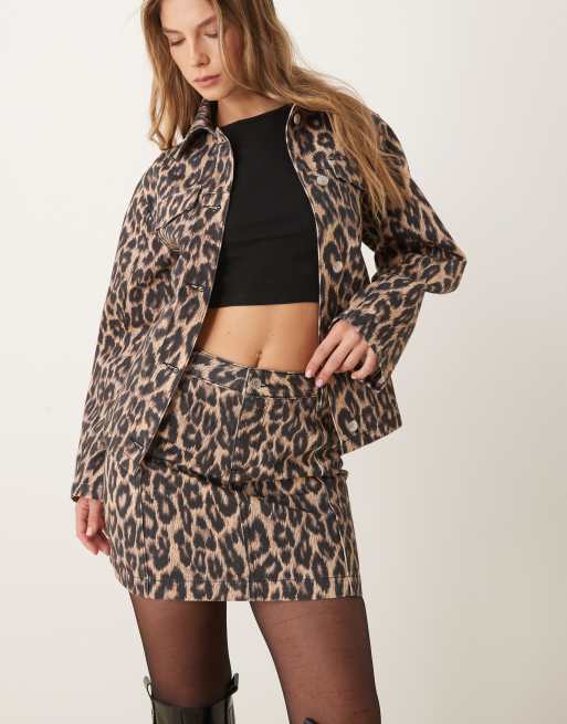 ASOS DESIGN - Mininederdel i denim med mørkt leopardprint